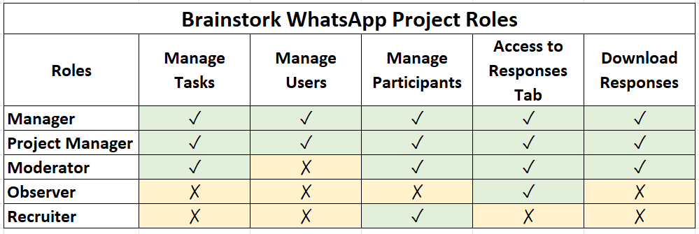 In a WhatsApp project, users with the Manager role have full access to all features.