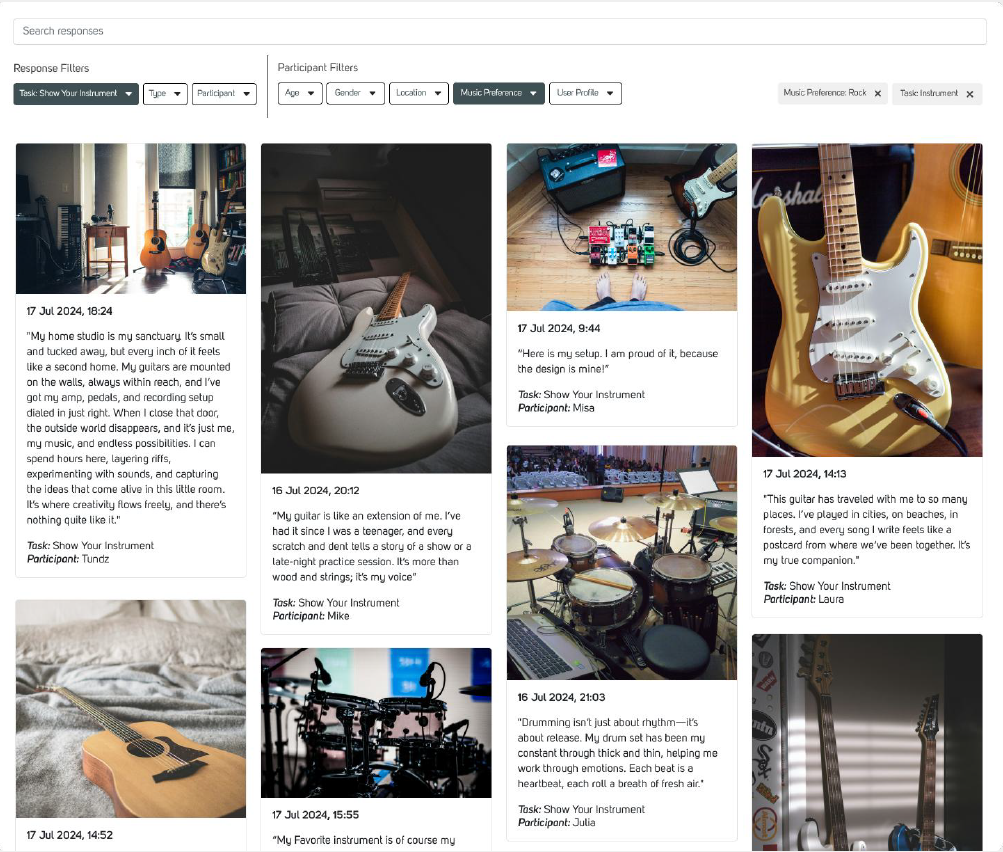 These filters are project-specific and give researchers the flexibility to segment responses with precision, making it simple to compare different participant groups or behaviours.